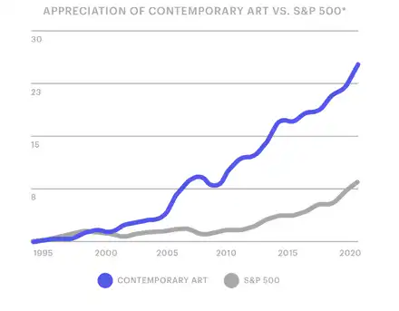 Contemporary and blue-chip art has historically outperformed traditional assets like real estate and gold over multi-decade periods.