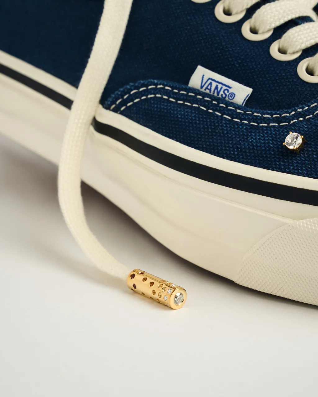 Rachel Goatley, a self-taught jewelry designer and longtime creative partner at Greg Yuna New York, brought her fine-jewelry background into the sneaker world by transforming four classic Vans models into wearable art. Each pair was handcrafted using sterling silver enamel lace locks, yellow-gold plating, and a curated mix of sapphires, opals, diamonds, malachite, moonstone, and quartz.